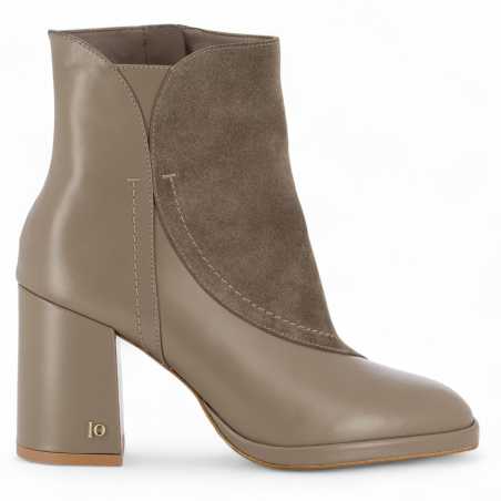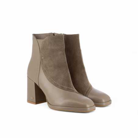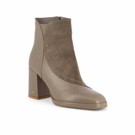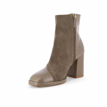 FIDEL, la bottine à bout carré, combine un style rétro-chic grâce à ses lignes curvy et ses contrastes bi-matières.